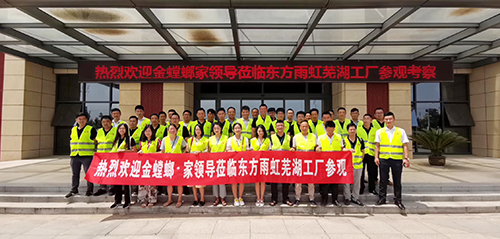 日前,東方雨虹民用建材集團戰略合作伙伴金螳螂·家,江蘇、安徽大區各門店負責人一行參觀考察東方雨虹蕪湖生產基地。