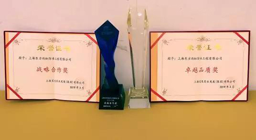 3月31日,寶龍地產(chǎn)2019年度戰(zhàn)略供方大會(huì)在上海寶龍艾美酒店召開。東方雨虹憑借卓越的品質(zhì)及高效的服務(wù)榮獲“卓越品質(zhì)獎(jiǎng)”“戰(zhàn)略合作獎(jiǎng)”。