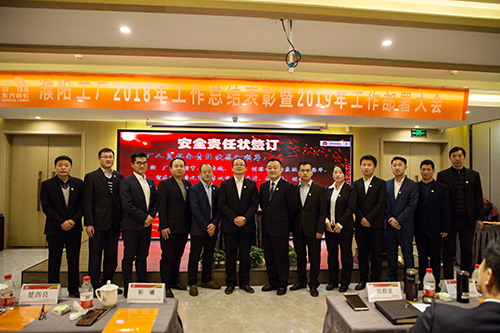大會對優秀員工進行表彰。濮陽生產基地各部門負責人、建設開發人員簽署2019年度安全責任狀。