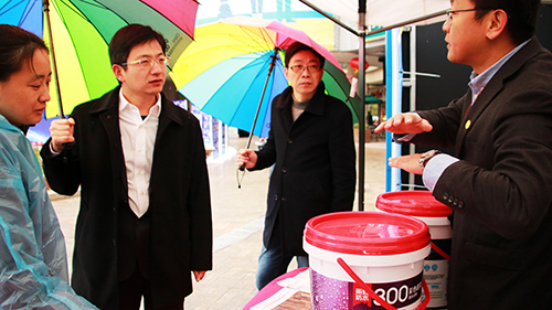 東方雨虹技術(shù)人員為黃鎮(zhèn)主任介紹產(chǎn)品