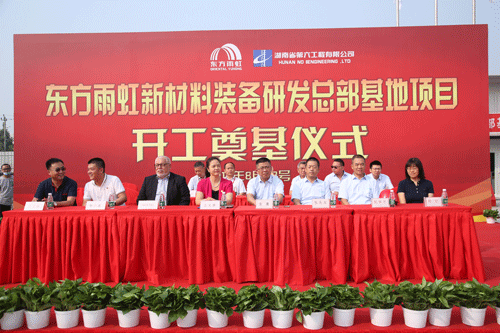 湖南省第六工程有限公司華北公司總經(jīng)理袁鷹、原巴斯夫高級副總裁現(xiàn)東方雨虹特聘專家 Joachim Roser博士、東方雨虹新材料研發(fā)總部基地項目負(fù)責(zé)人楊小波、湖南省第六工程有限公司華北公司東方雨虹新材料研發(fā)總部基地項目負(fù)責(zé)人劉華平、中國建筑設(shè)計研究院有限公司設(shè)計主持人時紅等共同出席了此次開工奠基儀式。