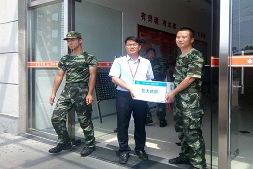 7月25日上午,東方雨虹上海生產基地廠長胡國雄、安環主任陳濤等為金山區消防官兵送去了防暑降溫品,向消防戰士表達了慰問和敬仰之情。