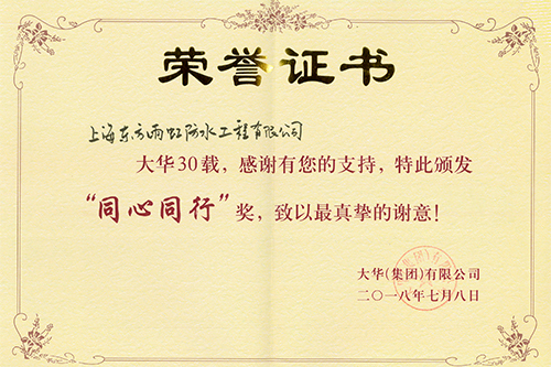 獲此殊榮,既是大華集團對東方雨虹多年來卓越品質及服務等方面的高度認可,亦體現了雙方合作理念的高度契合。在大華集團“同心同行”的合作理念下,東方雨虹將繼續以優質的產品、完善服務體系,高效地服務大華集團,與大華集團攜手共進、聚力同行、共襄發展、共謀未來。   未來,東方雨虹也將繼續秉承“為人類為社會創造持久安全的環境”的企業使命,踐行追求高品質之路,以互信互助、共享共贏的合作導向及持久穩定的合作關系,與合作伙伴一同為構筑和諧人居貢獻力量。