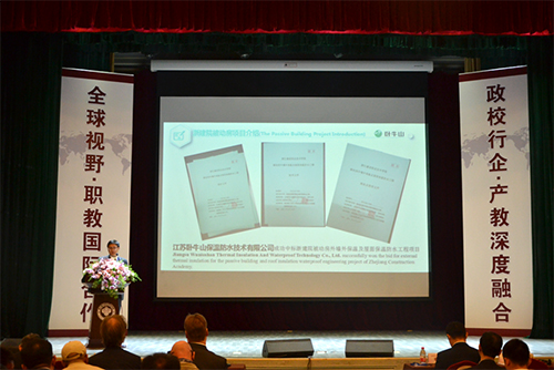 大會期間,進行了2018年中德合作被動式低能耗建筑揭幕儀式。在此次中德雙方合作的被動式低能耗建筑試點項目中,外墻保溫供材與施工由江蘇臥牛山提供。臥牛山憑借專業的技術人員和優秀的施工隊伍順利完成項目工程,并通過甲方驗收,獲得了德方的認可與贊賞。