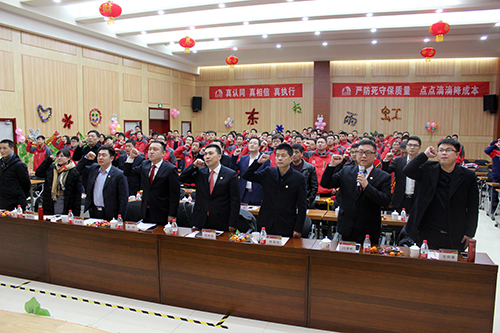 隨后,由陸殿富先生作總結(jié)講話。他肯定了咸陽生產(chǎn)基地在過去一年的變化與成長,并對(duì)2018年基地生產(chǎn)管理、成本管控、質(zhì)量管理、安全管理等方面提出要求和指導(dǎo)意見。陸殿富先生表示,2018年的主題是“加速和突破”,咸陽生產(chǎn)基地要堅(jiān)守安全底線,加強(qiáng)團(tuán)隊(duì)鍛造、運(yùn)營模式變革、技術(shù)創(chuàng)新,打基礎(chǔ)、大提速,一起奮戰(zhàn)2018。