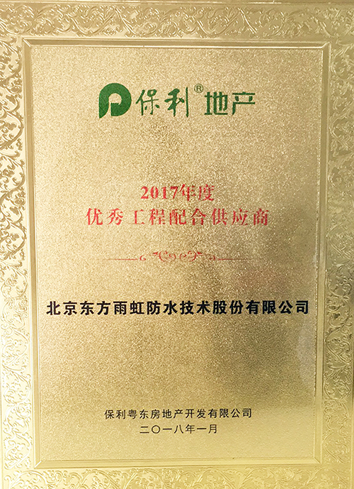 1月25日,保利粵東“和者匠心·筑善共贏”供應(yīng)商大會在東莞市東城區(qū)唐拉雅秀酒店舉行。大會公布了2017年度優(yōu)秀供應(yīng)商獲獎名單,東方雨虹從眾多供應(yīng)商中脫穎而出,獲得“保利地產(chǎn)優(yōu)秀工程配合供應(yīng)商”榮譽稱號。廣東東方雨虹副董事長尹建榮、總經(jīng)理助理王愛超受邀出席此次大會,并代表公司領(lǐng)獎。