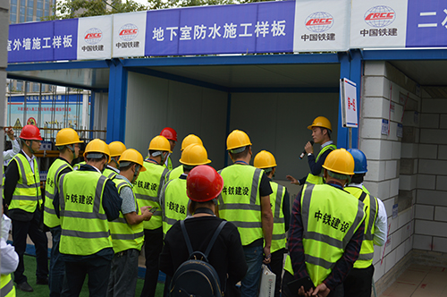 上午的活動在南沙蕉門河水岸廣場項目工地舉行,南沙區(qū)住建系統(tǒng)、中鐵建設(shè)集團合作伙伴及集團內(nèi)部其他區(qū)域負責(zé)人、項目經(jīng)理等約300人分批次觀摩。東方雨虹結(jié)合項目現(xiàn)場,展示了屋面和底板2個部位的防水做法,該項目負責(zé)人廣東東方雨虹業(yè)務(wù)一部經(jīng)理李勇對樣板進行了全面的技術(shù)解說,為觀摩團體留下了深刻印象。