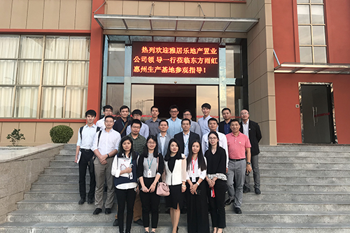 10月30日,雅居樂地產置業公司采購中心總經理李守飛、工程總監楊賢棟等一行15人考察東方雨虹惠州生產基地。