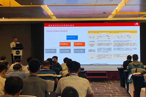 為助力廣東地區裝配式建筑技術高速發展,在本次論壇會上,廣東東方雨虹總工程師周子鵠作《裝配式建筑用MS密封膠深化設計及案例分析》演講。從裝配式建筑密封防水的原理和要求出發,深化MS密封膠設計,結合對東方雨虹密封防水材料的優質性能分析和MS密封膠施工工藝與應用案例闡述,獲得與會專家的高度認可。
