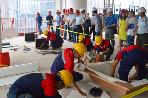 在活動過程中,東方雨虹通過海綿社區防排水系統防水樣板模型集中展示、防水現場施工工法展示、工地現場熱熔SBS改性瀝青卷材施工展示和滲漏維修系統解決方案講解等系列展示,展現了東方雨虹標準化施工的精湛手法和周到服務,為參展嘉賓留下了深刻印象。 一直以來,東方雨虹大力推行標準化施工管理體系和防水系統服務體系,始終堅守質量安全底線,將質量作為企業安身立命之本,不斷打造東方雨虹核心競爭力。