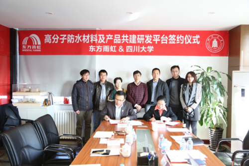 最后,向錦明代表東方雨虹與四川大學(xué)簽訂了共建高分子防水材料及產(chǎn)品研發(fā)平臺的合作協(xié)議,雙方表示,今后將進一步推進校企聯(lián)合,加強合作。