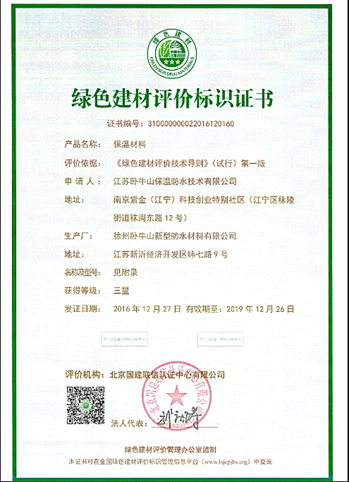 12月23日,全國綠色建材評價標識管理信息平臺公布了通過綠色建材評價企業的名單,臥牛山公司的石墨改性模塑聚苯板、模塑聚苯板及保溫砂漿等產品喜獲“三星級綠色建材評價標識”。