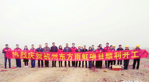 12月8日9點16分,東方雨虹杭州生產基地一期卷材生產線總包進廠,順利開工。建德市高新園區書記張國潮、浙江求是咨詢監理有限公司項目總監陳海根、東方雨虹建設開發總監吳士慧、建設總指揮李景絨等建設相關方人員參加了開工儀式。