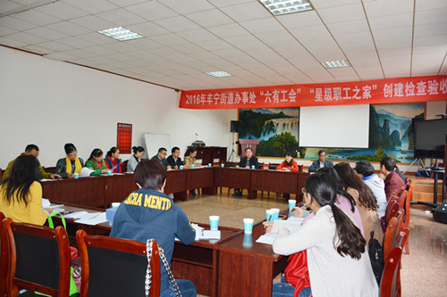 11月1日下午,昆明市五華區(qū)總工會(huì)常務(wù)副主席張麗萍、職工俱樂(lè)部主任熊昆華、豐寧街道總工會(huì)副主席楊忠國(guó)一行來(lái)到風(fēng)行防水,組織召開(kāi)五華區(qū)豐寧街道辦2016年“六有工會(huì)”、“星級(jí)職工之家”創(chuàng)建檢查驗(yàn)收會(huì),轄區(qū)內(nèi)有關(guān)企業(yè)共計(jì)16家前來(lái)參會(huì)。
