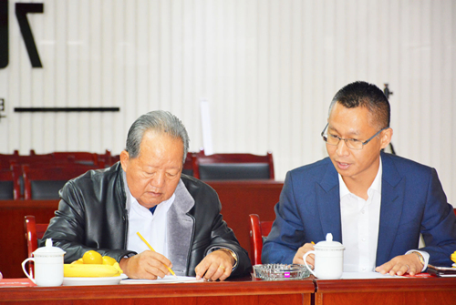 老撾原中央政治局常委、副總理阿桑·勞里(左)、風行防水總經理呂學強(右)