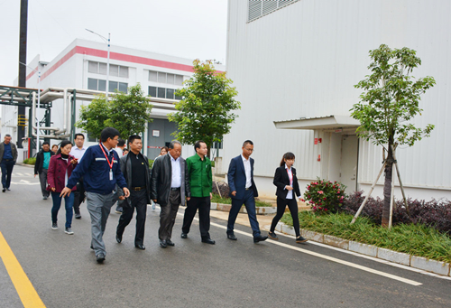 11月3日上午,老撾原中央政治局常委、副總理阿桑·勞里及云南黃龍集團董事長王超,云南黃龍集團總經理李伯良,昆明祿豐商會會長王自成,昆明姚安商會秘書長楊滿權一行18人參觀風行防水昆明生產基地,風行防水總經理呂學強陪同考察。