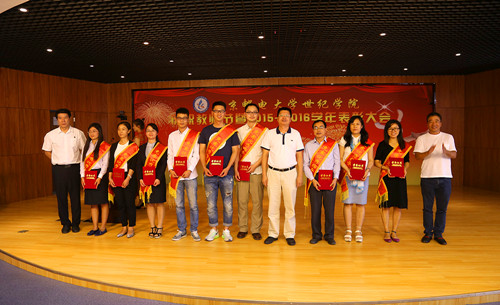 東方雨虹人力資源總監丁毅為北京郵電大學世紀學院優秀教師頒獎
