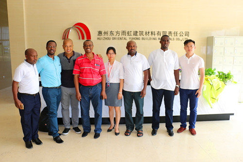 7月30日,東方雨虹海外事業(yè)部外籍員工馬里奧(Mario Neves)陪同西非考察團(tuán)來到中國(guó)廣州尋找合作伙伴,合作涉及建筑材料、汽車配件、醫(yī)療機(jī)械、工業(yè)品、投資合資等領(lǐng)域。期間,考察團(tuán)專程前往東方雨虹惠州生產(chǎn)基地進(jìn)行參觀洽談。