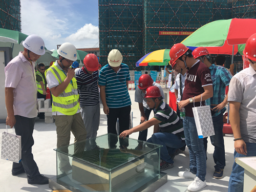 6月29日,廣州市南沙區(qū)2016年建筑施工“安全生產(chǎn)月”現(xiàn)場觀摩會在南沙區(qū)金茂灣三期工地舉行。廣東東方雨虹作為優(yōu)質(zhì)防水系統(tǒng)服務(wù)商,也受邀參與此次觀摩會,并現(xiàn)場展示了較為核心的防水系統(tǒng)。 本次現(xiàn)場觀摩活動(dòng)以“強(qiáng)化安全發(fā)展觀念 提升全民安全素質(zhì)”為主題,以樹立安全發(fā)展觀念,提升從業(yè)人員安全素質(zhì),維護(hù)建筑施工安全生產(chǎn)平穩(wěn)局面為目標(biāo),邀請了南沙區(qū)建設(shè)系統(tǒng)、南沙區(qū)質(zhì)監(jiān)系統(tǒng)及各大施工單位相關(guān)領(lǐng)導(dǎo)與人員約四百余人到現(xiàn)場參觀。中國金茂控股集團(tuán)與中建二局第三建筑工程有限公司皆十分重視防水工程,基于三方一直以來的良好合作和東方雨虹高質(zhì)量的工程表現(xiàn),特邀廣東東方雨虹在觀摩會現(xiàn)場進(jìn)行防水系統(tǒng)的展示。