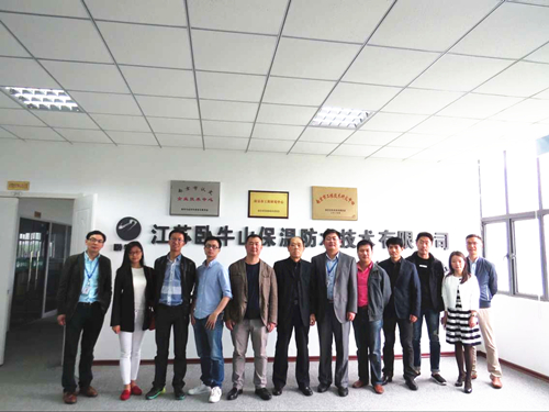 5月15日,中國房地產招標采購工程師協會成員恒盛地產集團集采部經理張永葵、融創集團采購部經理宣秋、五福集團總經理助理張晶、蘇州藍光和駿置業采購部崔武、上海嘉寶實業集團成本部徐曉云、寶業集團上海公司成本部袁修輝等一行7人從上海、杭州等地赴江蘇臥牛山保溫防水技術有限公司參觀考察,臥牛山公司副總經理秦峰濤、總工程師花海東、副總工程師成時亮負責接待并陪同考察。 上午9點,各位地產公司招標采購負責人抵達江蘇臥牛山公司,在雙方技術交流會上,江蘇臥牛山公司總工程師花海東向在場的各位地產公司領導簡要介紹了臥牛山公司的企業現狀及未來戰略規劃,并系統介紹了“國內主流外墻保溫方案的比較優勢”,就砂漿為核心的薄抹灰保溫系統、保溫裝飾一體化板系統、內保溫系統等常見的建筑保溫系統進行了全面的分析。另外,就砂漿、網格布、錨栓等重要的建筑保溫輔材,雙方也進行了交流。