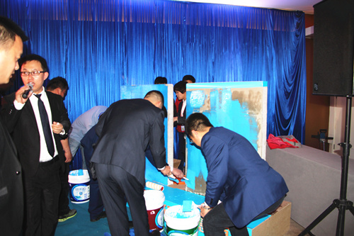 東方雨虹民建公司副總經理鄭曉華先生發表“大變革時代下的建材零售”的主題演講,他指出2016年經濟新常態是個高頻詞匯,面對新的市場形式,東方雨虹的代理商也要快速成長以適應市場變化。 隨后,會議邀請民建公司副總經理熊衛鋒講解“藍色金典”產品知識,并現場安排產品實操。各代理商紛紛拿起工具親身體驗,對產品施工的體驗和優質效果大加贊賞。