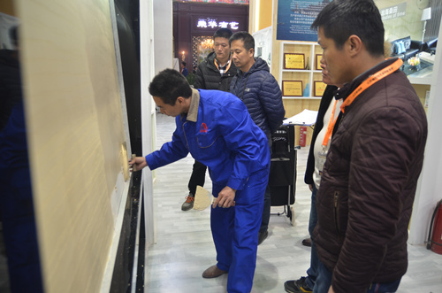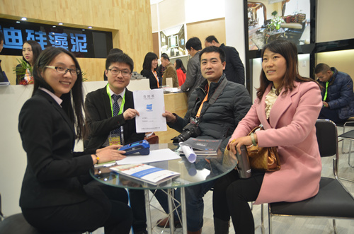 一大早,慕名前來的客戶就擠滿了洛迪展廳,近距離觀看和感受硅藻泥產品的肌理、質感。洛迪硅藻泥產品因其吸附分解甲醛、凈化空氣、調溫調濕、防火阻燃、吸音降噪等生態環保性能以及各有千秋的樣式、優越的品質、獨特的藝術美感和表現力吸引了不少觀眾流連。   展會剛開館就成功簽訂了兩家客戶,可謂是旗開得勝,也為此次展會奠定了成功基調。展會第一天,現場不斷傳來簽約成功的喜訊。