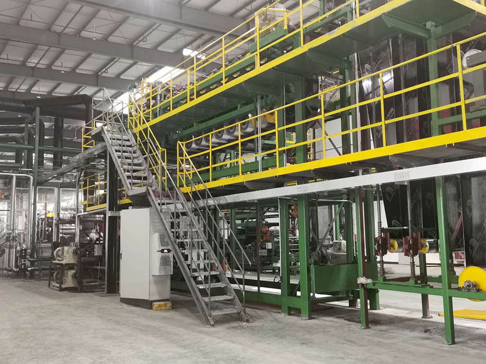 據(jù)悉,此條自研組合卷材生產(chǎn)線可實(shí)現(xiàn)有胎、無胎卷材的自由切換生產(chǎn),年產(chǎn)1500萬平方米改性瀝青防水卷材,通過傳感技術(shù),從前端原材料導(dǎo)入到末端產(chǎn)品碼垛,實(shí)現(xiàn)各環(huán)節(jié)有序銜接,進(jìn)一步保證生產(chǎn)線的效率,增強(qiáng)產(chǎn)品的性能穩(wěn)定,實(shí)現(xiàn)數(shù)字化生產(chǎn)。