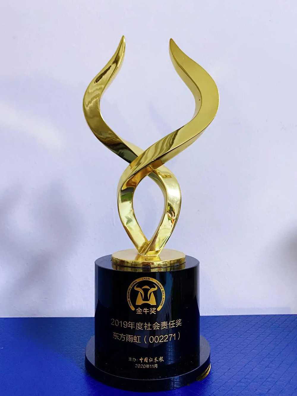 11月19日,由中國證券報、海口市人民政府聯合主辦的“2020上市公司高質量發展論壇暨第22屆上市公司金牛獎頒獎典禮”在海口舉行,東方雨虹(ORIENTAL YUHONG)榮獲年度金牛社會責任獎。