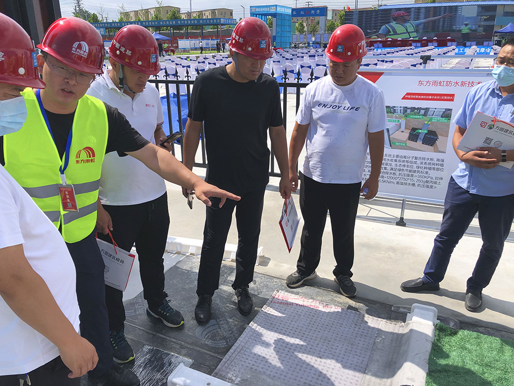 觀摩會過程中,住建局領導、中建五局、地產代表、監理公司等多家單位到東方雨虹展位參觀,并對東方雨虹的新產品及標準化施工表示高度認可。