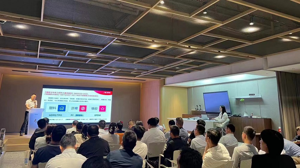東方雨虹工建集團(tuán)江蘇公司總工程師徐方賓作《建筑底板防水新材料應(yīng)用分析》主題分享,他圍繞《建筑與市政工程防水通用規(guī)范》,系統(tǒng)分析底板HDPE、底板R類橡膠卷材、底板PY類瀝青卷材及底板其他類卷材預(yù)鋪反粘應(yīng)用的方案及優(yōu)劣勢。他強調(diào),通過改進(jìn)防水材料的抗穿刺、抗沖擊等性能及防水施工工法,可以去掉不必要的結(jié)構(gòu)層次,增加防水層的可靠性。