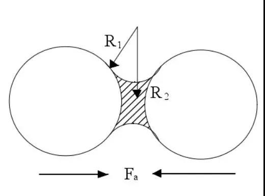 毛細管壓力引起的兩粒子間的應力