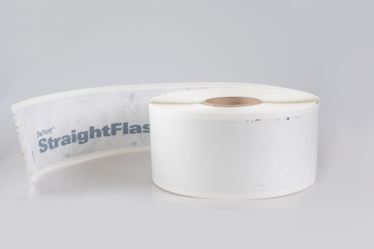 DuPont™直線泛水是一種具有一定延展性的自粘防水膠帶,適用于建筑接縫部位的防水密封(尤其適合直邊),解決泄露及裂縫問題。包括但不限于門窗洞口四周、墻體拼接縫、防水透汽膜或防水材料收邊、以及不同材質(zhì)交界縫等部位的水密和氣密保護(hù)。