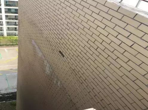 女兒墻與屋面結(jié)合處外墻面通常會(huì)出現(xiàn)一圈較大裂縫,雨水通過外墻面裂縫進(jìn)入墻體而滲入室內(nèi)。